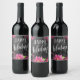 Happy Holidays stickers bouteille de vin de Noël. Design de style rustique simple avec poinsettias et arrière - plan de texture en bois. Tout le texte est ajustable et facile à changer pour vos besoins de partie.