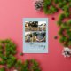 Carte de vacances moderne en bleu pastel, customisée de quatre images de votre choix dans un cadre doré délicat - véritable feuille d'or pour Joyeux Noël. La couleur et la couleur Arrière - plans des bandes sur le dossier peuvent être modifiées dans l'outil de conception si vous le souhaitez.