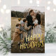 Happy Holidays Modern Lettering Simple One Photo Foil Holiday dispose d'une photo complète, avec un texte blanc superposé dans un style de lettrage amusant.