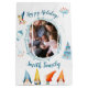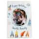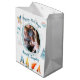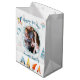 Sacs cadeaux de Noël blanc moyen et Joyeux avec elfes de Noël et graphiques mignons, photo changeable et texte - vous pouvez ajouter votre photo et nom de famille