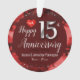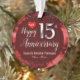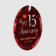 Joli ornement rouge Joyeux 15ème anniversaire. Faux feuille le 15 et comme cadre de bordure. Arrière - plan à huile rouge créé par Valarie Wade. Petit bijou de coeur rouge dans le coin supérieur. Les noms et les dates sont réglables.