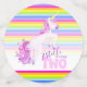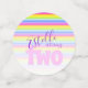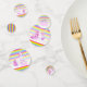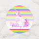 confetti de table de 2e anniversaire, avec un joli tableau d'aquarelle de licorne blanc et des bandes colorées arc-en-ciel. Personnalisez avec votre propre nom de fille d'anniversaire, dit actuellement, Estelle a deux ans. Dessin unique, aquarelle peinture art et graphisme par Sarah Trett www.sarahtrett.com pour www.mylittleeden.com