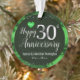 Joli ornement vert Joyeux 30e Anniversaire. Faux feuille sur 30ème et comme cadre de bordure. Arrière - plan à huile verte créé par Valarie Wade. Petit bijou de coeur vert dans le coin supérieur. Les noms et les dates sont réglables.