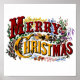 Réimpression du et 1876 Joyeux lithographie noir et blanc de Noël avec la coloration ajoutée par les artistes Vintages américains.