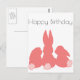 NewParkLane - Carte de Vœux, avec trois mignons lapins en rose corail, et vœu 'Joyeux Anniversaire' en typographie moderne et élégante.