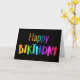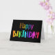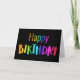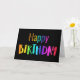 Fun Happy Birthday From All Of Us carte d'anniversaire avec les mots colorés arc-en-ciel Happy Birthday sur la couverture. Le texte intérieur est From All Of Us, également en lettres colorées. La couleur de couverture affichée est noire, mais vous pouvez modifier la couleur de couverture à l'aide de l'outil de conception. Trois tailles disponibles. Cette carte d'anniversaire festive d'un groupe serait formidable à donner à un membre de la famille, un collègue de travail, un patron, un entraîneur ou un enseignant. De Heard_.