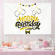 Cette bannière met en valeur les mots "Joyeux Anniversaire" dans une police d'impression unique avec des lettres noires et jaunes ainsi qu'un contour inversé avec des ballons de fête d'anniversaire, des bannières dans ce thème et style d'anniversaire. Cette bannière a une impression simple face, des mesures de sécurité extérieures de 4"x6" fabriquées avec une finition mate élégante et est à la fois résistante à la décoloration et aux déchirures pour une utilisation à l'intérieur ou à l'extérieur, idéale pour annoncer n'importe quoi, des anniversaires aux remises de diplômes, des mariages aux anniversaires. Ourlets et bords soudés thermiquement pour une finition soignée. Les bannières extérieures peuvent être achetées avec des œillets métalliques.