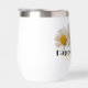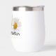 Trois marguerites blanches avec le texte "Joyeux anniversaire" et un modèle pour nom personnalisé en jaune.