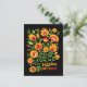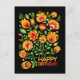 Belle composition folklorique avec un voeu d'anniversaire heureux en bas. Couleurs d'automne. Design inspiré de l'art populaire polonais de la région de Lowicz. Les zones de texte sur la page arrière sont entièrement personnalisables.