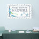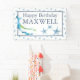Célébrez en style avec cette bannière personnalisée conçue comme une bannière d'anniversaire heureuse pour les garçons! Doté d'une jolie baleine d'aquarelle et d'un motif d'étoiles de mer aux teintes bleu pâle, ce design ludique est parfait pour une fête sur la plage ou la piscine avec un thème nautique. Personnalisez votre joyeux signe d’anniversaire avec le nom et l’accueil de votre enfant à l’aide des champs de modèle faciles à modifier. Ces signes d'anniversaire heureux et personnalisés ajoutent une ambiance côtière fantastique à toute célébration et sont parfaits pour les petits amoureux de l'océan. Pour découvrir des décors de fête d'anniversaire plus assortis, visitez www.zazzle.com/dotellabelle. Art original et design de Victoria Grigaliunas de Do Tell A Belle.