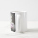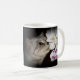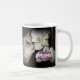 Un beau chat britannique tigré argenté de Shorthair avec l'eyecolour orange sur cette tasse unique de chat avec le texte de "joyeux anniversaire" sur les fleurs blanches et l'arrière - plan noir de photo. Un cadeau parfait pour des amoureux de les chats. Personlize svp avec votre propre texte. Photo originale de chat par le mmersdesign.