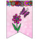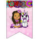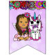 Des fées violettes et roses et des licornes sifflent une bannière d'art populaire pour la fête d'anniversaire d'une petite fille.