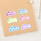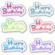 Feuille de six autocollants multicolores "Joyeux anniversaire". Parfait pour décorer les faveurs et les sets de table de fête d'anniversaire.
