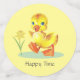 Joyeux canard avec de l'or comme des confettis sur la table jaune Party confetti. Texte prêt à être personnalisé.