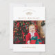 Ce carte photo de vacances personnalisable dispose d'un panier de pin traditionnel et festif, de type simple et chic avec l'année et d'un Happy Holidays accueillant une seule photo pour une sensation de luxe haut de gamme. Le dos est assorti d'un motif de pois à flocon doré.