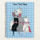 Ce planificateur est un plaid bleu et blanc avec une chatte mère blanche heureuse assise avec ses trois chatons mignons qui sont blancs, noirs et gris tous portant des arcs autour du cou. Customisez votre texte sur le devant avec le modèle.