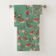 Belle illustration de trois chiens Carlins habillés en tenue de Noël.