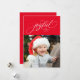 Et l'élégant script "joyful" est entouré d'étoiles scintillantes sur cette carte de vacances en une photo. Personnalisez-le avec votre nom et/ou salutation et photo. Parfait pour envoyer l'acclamation de Noël à des amis et à la famille. L'arrière est un rouge assorti pointillé avec les étoiles scintillantes coordonnées.