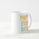 Cette tasse colorée de vacances vous obtiendra se sentant joyeux. Elle comporte les mots "joyeux tout" dans les lettres colorées des deux côtés.