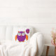Ce coussin génial présente une chouette mignonne avec les yeux fermés comme s'il dormait et des griffes mignonnes. Son corps est violet et ses ailes, oreilles, griffes et bec sont oranges. Le hibou tient un ballon avec "happy Halloween" écrit dessus et est prêt à faire la fête.