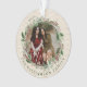 Élégant et festif ornement de la couronne photo de Noël avec notre couronne d'aquarelle peinte à la main. Customisez avec deux photos, une de chaque côté de l'ornement. L'arrière - plan est décoré dans un style rayé de champagne d'or clair. Personnalisez avec deux photos, la signature familiale et l'année. OEuvre dessinée à la main par Moodthology Papery.