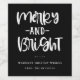 Festive Merry And Bright, étiquettes de bouteille de vin de vacances. Caractéristiques de design, blanc simili typographie de vacances citation sur arrière - plan noir. Deux lignes de texte modèles pour votre message et vos noms.