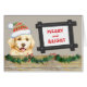 Sur le devant de cette mignonne carte de Noël, un adorable chien chiot Golden Retriever porte un chapeau de Père Noël motif et s'assied au-dessus d'une guirlande décorée d'une clôture en bois. A côté de lui, une pancarte en bois rustique dit "MERRY and BRIGHT" en rouge. L'intérieur de la carte comporte deux champs de texte que vous pouvez customiser.