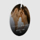 Un ornement de Noël moderne, minimal, élégant et élégant pour le nouveau Mr et Mme. Doté d'une calligraphie de coeur joyeuse et mariée avec une belle photo du couple nouvellement marié dans la couche de couverture défraîchie. Vous pouvez personnaliser la photo et le texte. La photo de placement montre une photo romantique d'un couple faisant face avec la mariée tenant le visage de son époux avec amour. (Ceci est une photo de Jonathan Borba sur Unsplash et n'est qu'à titre d'illustration. Veuillez le remplacer et le customiser par le vôtre.)