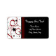 Joyeux étiquettes de adresse du Nouvel An en rouge, noir et blanc classique avec des tourbillons élégants et des étoiles motif, l'ajout parfait à vos cartes et enveloppes du Nouvel An.