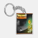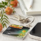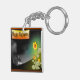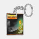 "Happy Halloween" est imprimé sur cette bannière, et une maison hantée est allumée dans le fond. On voit une sorcière et un fantôme voler dans la nuit et un chat noir est assis dans le cimetière. Une fleur d'Halloween jaune et rouge est à l'avant du design. Ces porte - clés sont disponibles dans des styles et des tailles variés.