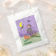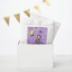 Quelques sacs de faveur amusants pour une fête d'Halloween pour enfants avec l'illustration d'une sorcière tenant un casquette sur un arrière - plan violet et vert et les mots "Happy Halloween !" écrits en lettres vertes. © ArianeC Illustrations