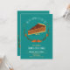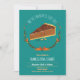 Une invitation Thanksgiving avec un morceau souriant de tarte au pacan qui est prêt pour le jour férié. Tout le texte est personnalisable. La couleur arrière - plan a un ton turquoise plus foncé.