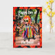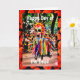 Un squelette effrayant vêtu de rubans colorés défilent dans une parade de Dia de los Muertos. La scène de défilé est bordée de marigolds. Fleur traditionnelle du Jour des Morts. Famille, amis, voisins et collègues y trouveront une carte de plaisir. Achetez par le téléchargement Instant de Zazzle pour imprimer plusieurs invitations, etc. Dites à quelqu'un d'avoir un "Joyeux Jour des Morts".