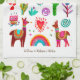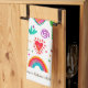Un joyeux tableau d'art populaire avec lamas, cactus, ciel ensoleillé, fleurs et un arc-en-ciel plein d'espoir. Cette serviette de cuisine de qualité est personnalisable avec votre choix de nom ou de texte. Fait un beau cadeau personnalisé. Un ajout coloré et très doux à votre cuisine.