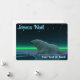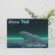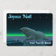 A peaceful moment in the long Arctic night. A Polar Bear rests at the edge of an open area in the pack ice. The Northern Lights glow in the distance; bright stars twinkle overhead. “Joyeux Noёl” appears in glowing blue and white. Add your own additional text.