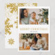 Cette conception de carte de vœux festive et élégante est parfaite pour montrer vos belles photos de famille. La conception comporte une belle photo de famille carrée 2 et un script "Joyeux Noël " avec votre nom de famille. Motif de flocons de neige dorés au verso.
