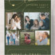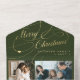 Elégante année stylisée en revue Joyeux Noël faux or classique script de calligraphie cinq photos de famille chasseur carte de vacances verte avec votre texte personnalisé sur les deux côtés.