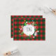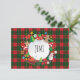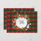 Carte de vœux Monogramme (Personnalisée) - Joyeux Noël et Bonne Année ! Carte de vœux XMAS décorée de symboles magiques de Noël, motif d'éléments de cadeaux de vacances d'hiver, bonhomme de neige, sapin de Noël, boule de Noël, renne, flocons de neige, étoiles de Noël, et plus de personnages festifs sur des ornements carrés à carreaux de Noël, motif écossais (couleurs vert et rouge). Conception graphique originale tendance. Invitations et Papeterie > Cartes de vœux. Présente la décoration des vacances d'hiver. Conception de carte de vœux Monogramme avec modèle de texte. Personnalisez-les en ajoutant un nom. Décoration graphique sur les deux côtés.