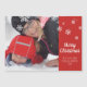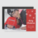 Carte magnétique Festive Noël avec un modèle photo. L'arrière - plan est rouge, des flocons blancs recouvrent la photo. Insérez votre photo préférée dans le modèle. Vous pouvez customiser le texte Joyeux Noël, salutation personnelle avec les noms et un numéro d'année. Le texte est dans un script manuscrit blanc tendance.