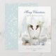Cette élégante carte de Noël présente deux cygnes blancs avec un fond lavis aquarelle doux avec des flocons de neige et des cadeaux ! Le texte "Joyeux Noël de la part de nous deux" peut être modifié pour un message de votre choix et assurez-vous de personnaliser avec vos noms et l'année. Si vous avez besoin d'aide pour transférer ce design sur un autre produit, contactez-moi via Zazzle ou suzparada@gmail.com.