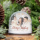 Faites passer des vacances à vos amis et à votre famille avec ce globe de neige de gardienne moderne. Le texte en fausse feuille d'or rose dit "Joyeux Noël" dans un élégant script d'écriture manuscrite. Remplacez l'exemple d'image par votre photo préférée, et ajoutez votre nom de famille et l'année. Un filtre en dégradé blanc permet de faire apparaître le texte.