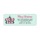 Ces étiquettes d'adresse de retour Joyeux Noël vert menthe et rose présentent trois mignons pingouins décorant un sapin de Noël. Le modèle facilite la saisie de votre adresse.