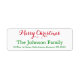 Personnalisée, personnalisée, simple, élégante, festive typographie verte et rouge / script / police, Joyeux Noël / Joyeux Jours fériés / Bonnes Fêtes retourner l'étiquette d'adresse. Entrez simplement le nom de famille / le nom de la mariée / de la femme et du mari, et l'adresse, pour customiser.