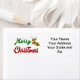 Étiquette avec Joyeux Noël en texte vert et rouge 3D et un renne. Customisez ceci avec votre propre adresse et utilisez pour envoyer des cartes et des cadeaux de Noël. Trois tailles étiquettes au choix.