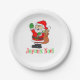 Joyeux Noel paper plates featuring a cartoon Santa. Say "Merry Christmas" in French with these cute plates. The perfect party decor for a Christmas party in a French household.