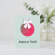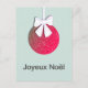Joyeux Noel. French Merry Christmas. Cute Christmas bulb with white bow. Background colour can be customized
