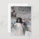 A vintage French Christmas postcard from the public domain. It features a girl dressed as a Christmas angel carrying gifts.