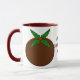 Cette tasse festive amusante ferait un grand cadeau pour maman. Il est doté d'un pudding de Noël couleur chocolat savoureux avec une pointe de saint sur le dessus. L'image est des deux côtés de la tasse. Entre les est le message "Joyeux Noël maman, ce texte est personnalisable afin que vous pouvez transformer ceci en un joli cadeau personnalisé pour votre maman ou une autre relation ou ami. Le design est montré sur une tasse rouge et blanc de style rond, mais est également disponible sur de nombreux autres styles et couleurs de tasse, y compris de belles tasses en verre dépoli et des tasses de voyage commode pour garder les boissons chaudes au chaud pendant l'hiver.