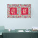 An elegant and fancy calligraphy swirl font in beige on red reads "Joyeux Noel" which is french for Merry Christmas. The lettering is surrounded by a square red shape around which figurines of Father Christmas; a pirate gingerbread cookie; a nutcracker; wrapped gifts; baubels; stars; pocket watches and snowflakes appear in muted red; mustard and blue on pale blue. These are ideal as part of your Xmas decor for the office this festive season.