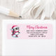 Ces étiquettes d'adresse de retour de Noël roses personnalisées comportent le "Joyeux Noël" en caractères de caractères de script et un patinage de pingouin mignon en vêtements roses. Le modèle facilite la saisie de votre adresse.